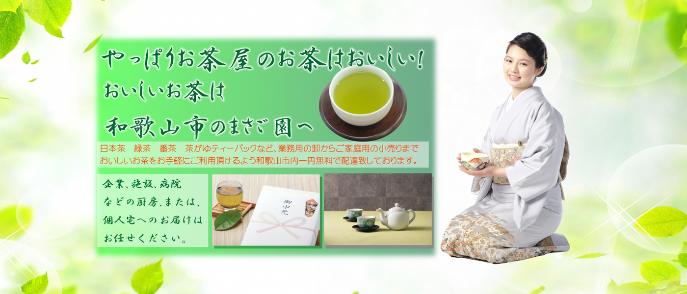 | おいしいお茶は和歌山市のまさご園へ | "安心・安全"美味しいお茶をご用意しております | 和歌山市内一円配達致します! |